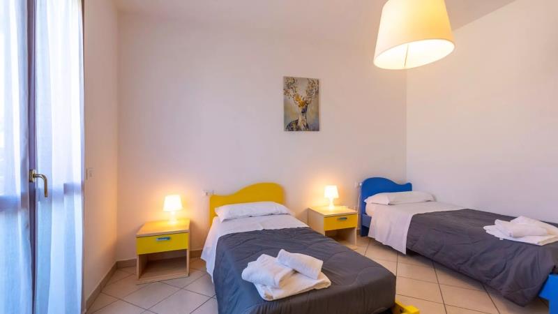 Pláž: písečná s pozvolným vstupem do moře, plážový servis za poplatek (nejsou povoleny vlastní slunečníky a lehátka). V termínu 16/5-19/6 a 22/8-5/9 je v ceně plážový servis (1 slunečník + 2 křesla/ apartmán), na pláži CENTRO SPORTIVO nebo CAPO NORD).