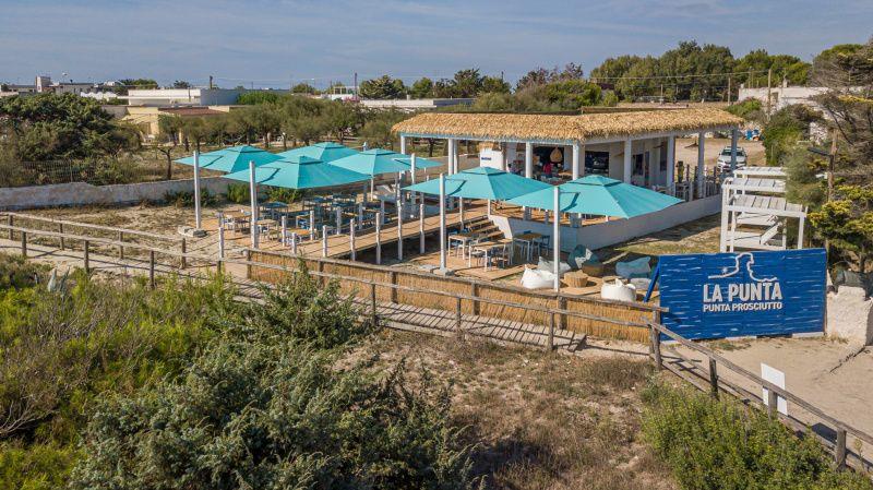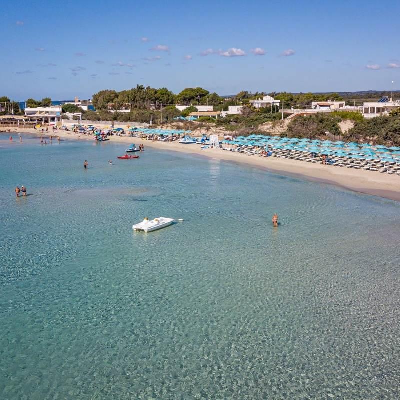 Pláž: písečné zátoky zasazené mezi skalami. Bezplatná kyvadlová doprava spojuje kemp s plážovým klubem „La Punta“ v Punta Prosciutto s pravidelnými odjezdy každých 30 minut od 9:00 do 13:30 a od 15:00 do 19:00. Zde je možné si pronajmout slunečníky nebo si užívat veřejnou pláž.