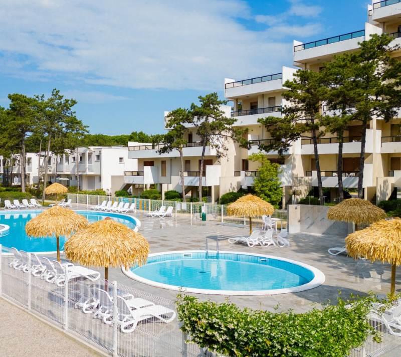 CHARAKTERISTIKA: komplex leží v borovicovém háji, v klidném místě a je ideální volbou pro rodiny s dětmi. Komplex se skládá z několika budov - Castello, Rialto, Accademia, Campiello, Ducale. Užijte si skvělou dovolenou v letovisku Bibione Lido del Sole.