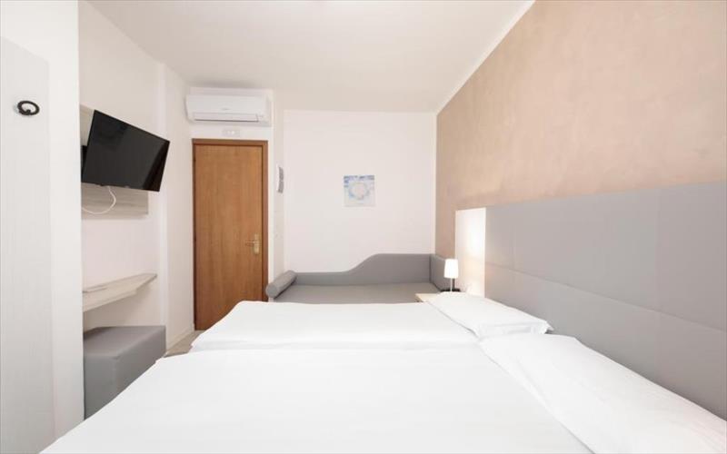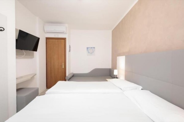 Charakteristika: Stavba má recepci,bar,televizní místnost, soukromé parkoviště pro hosty, půjčovna kol a plážový servis na soukromé hotelové pláži. Má 33 dvoulůžkových pokojů a 5 jednolůžkových pokojů rozmístěných na 4 podlažích. Všechny pokoje mají vlastní koupelnu se sprchou a vysoušečem vlasů,bezpečný, satelitní TV s kanály v italštině, angličtina a němčina,mini-bar, klimatizace a malý balkon zařízený stolem a židlemi. V některých dvoulůžkových pokojích je možné přidat třetí lůžko.