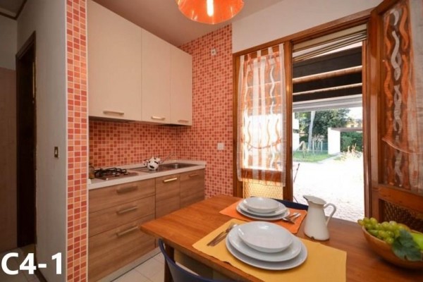 C4-1: (max. 4 osoby) v přízemí – ložnice s dvojlůžkem, ložnice s patrovou postelí, denní místnost s kuchyňským koutem, terasa. Apartmány jsou menších rozměrů.