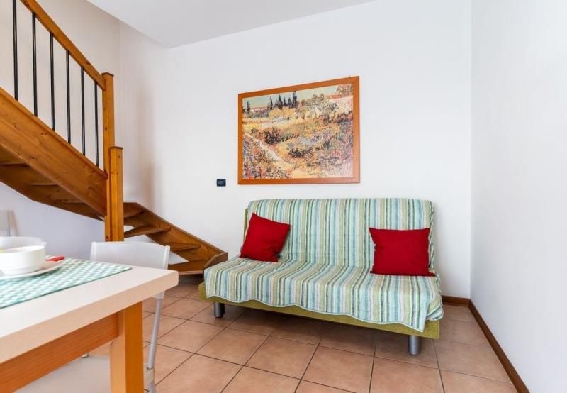 C7 rezidence: (max. 7 osob) ložnice se dvěma lůžky, ložnice se třemi lůžky, denní místnost s rozkládacím dvojlůžkem a kuchyňským koutem, balkon v patře (příp. malá zahrádka v přízemí).