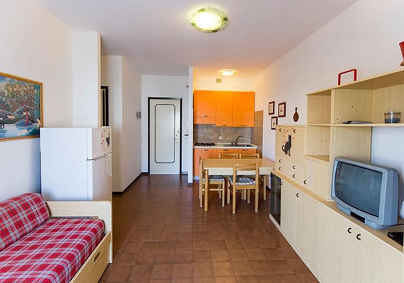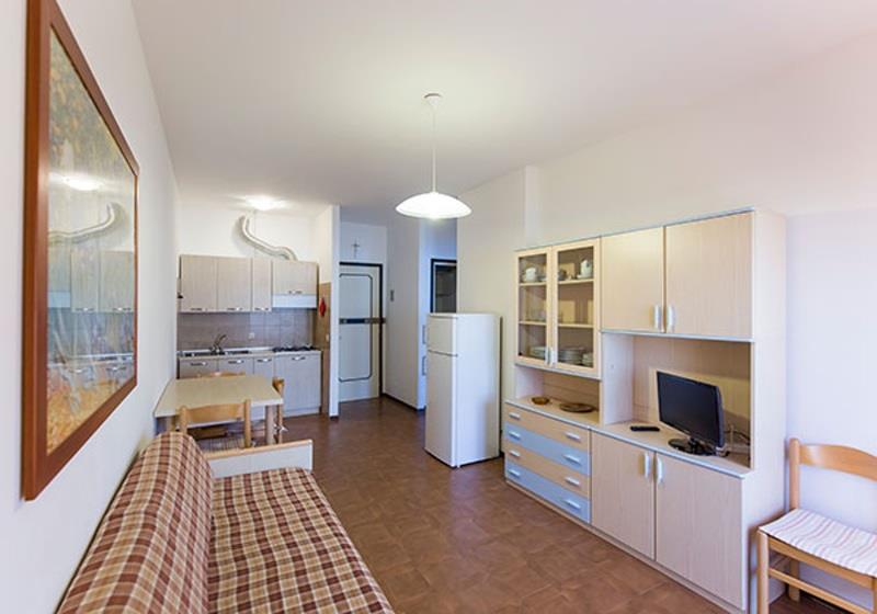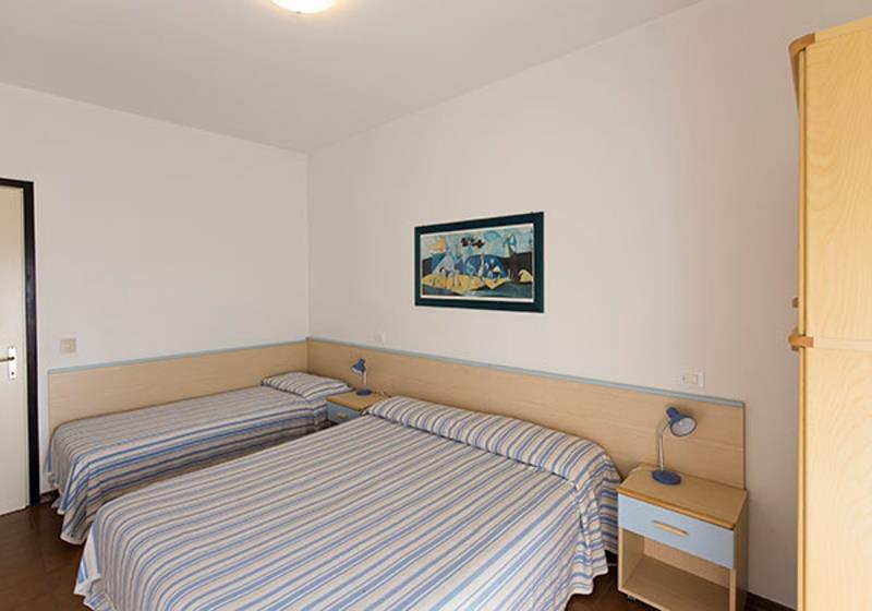Ubytování: apartmány jsou standardně zařízeny, vždy s vybaveným kuchyňským koutem, SPR+WC, balkon. Některé apartmány mají TV, některé klimatizaci (na vyžádání při rezervaci).