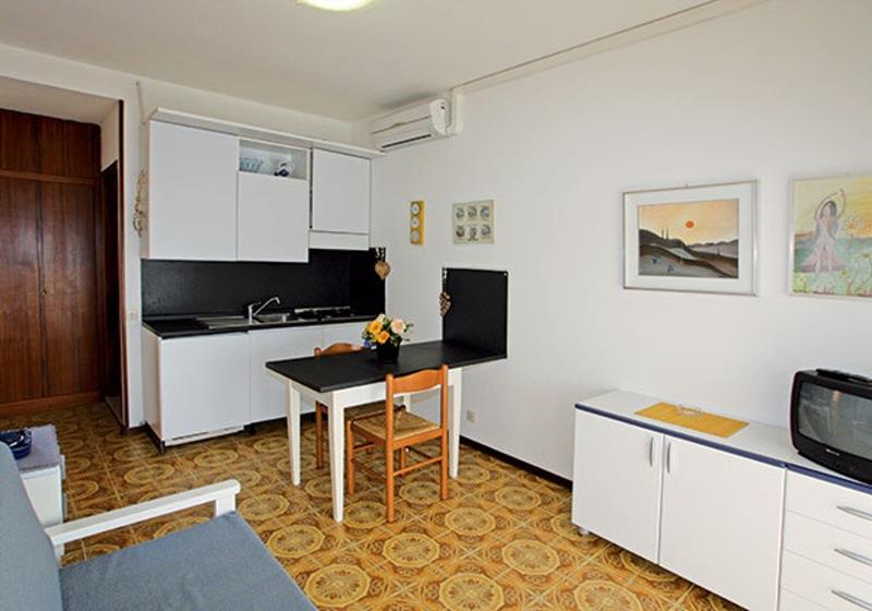 B4: (max. 4 osoby) ložnice s dvojlůžkem, denní místnost s rozkládacím dvojlůžkem, kuchyňský kout.