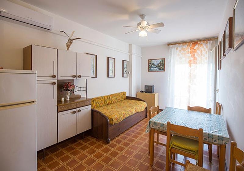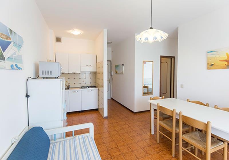 Ubytování: apartmány jsou standardně zařízeny, vždy s vybaveným kuchyňským koutem, SPR+WC, TV, balkon. Některé apartmány s klimatizací (na vyžádání).
