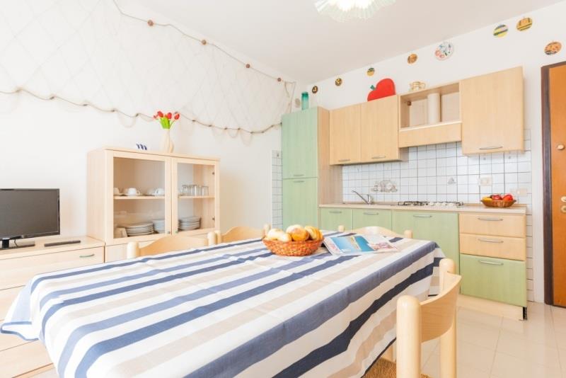 C7: (max. 7 osob) dvě ložnice se dvěma a třemilůžky (jedna může být s patrovým lůžkem), denní místnost s rozkládacím dvojlůžkem, kuchyňský kout, balkon nebo zahrádka.