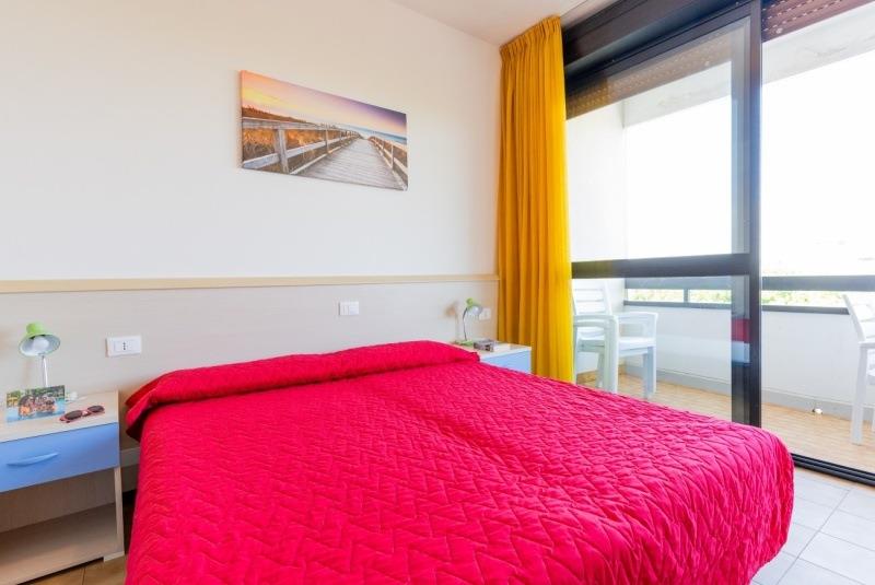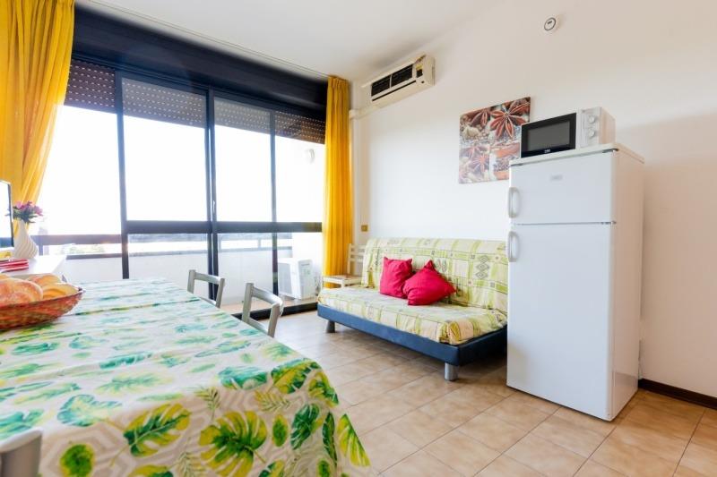A4-2: (max. 4 osoby) studio (jedna místnost) se dvěma rozkládacími dvojlůžky (přép. patrové lůžko), kuchyňský kout, balkon, orientace do vnitřního atria.