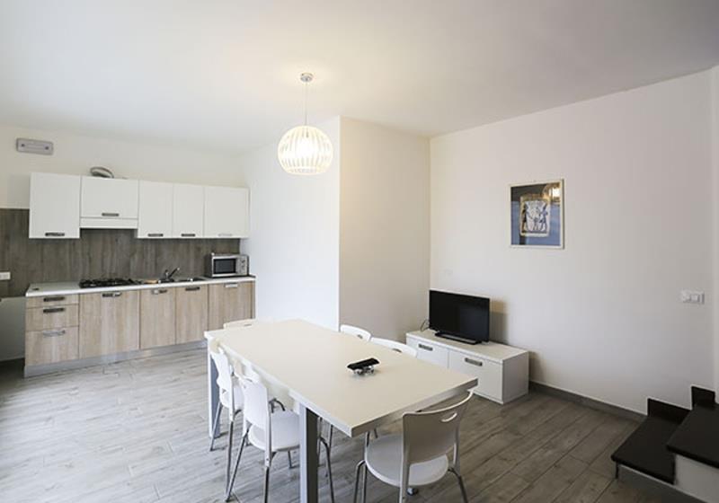Ubytování: nově zařízené apartmány, vždy s vybaveným kuchyňským koutem, mikrovlná trouba. SPR+WC, TV, klimatizace, pračka, terasa se zahradním nábytkem.