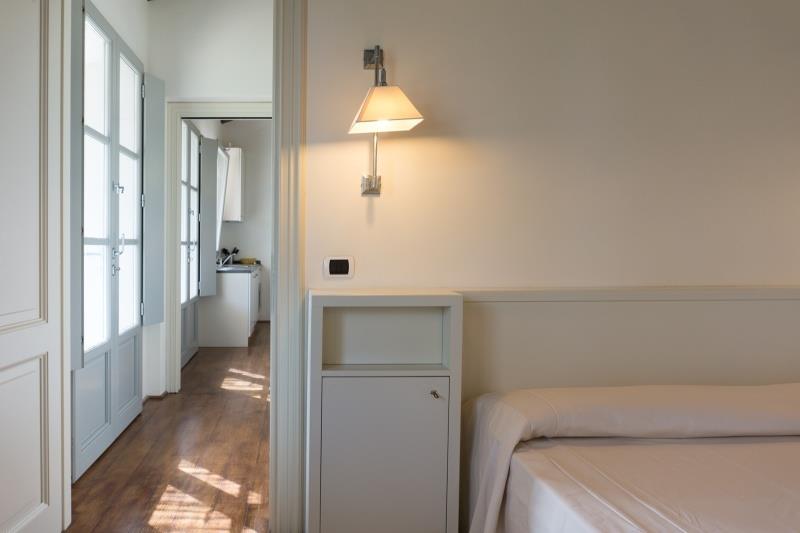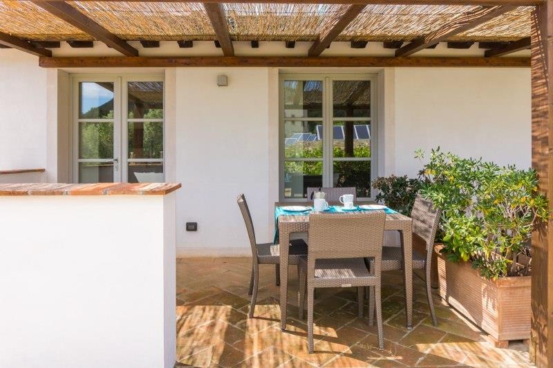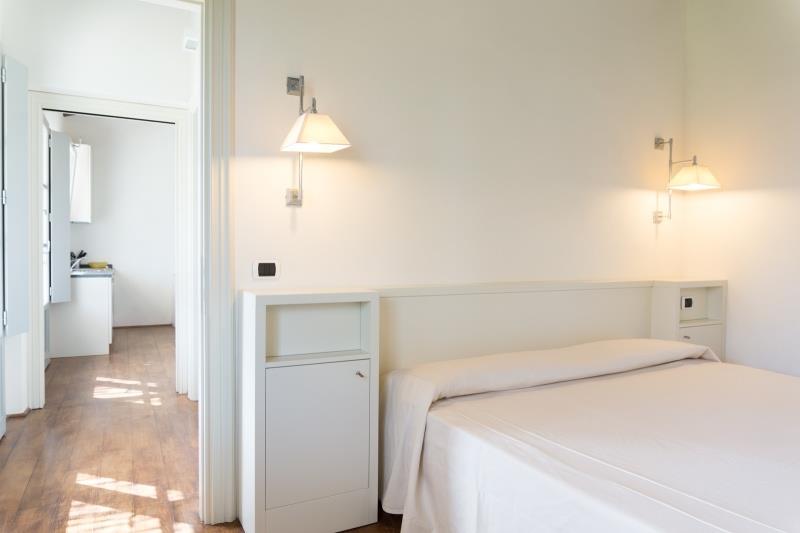 B4 (max. 4 osoby, v hlavní budově, Oleandro, Lentisco, Palma): venkovní veranda vybavená stolem a židlemi, obývací pokoj s kuchyňským koutem a rozkládacím gaučem pro 2 osoby, TV, ložnice manželskou postelí, SPR+WC, veranda. Přízemí nebo patro.