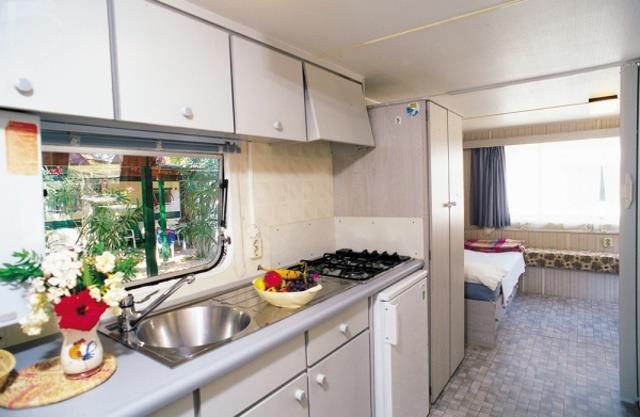 Ubytování: mobilhomy jsou jednoduše zařízeny, vždy s vybaveným kuchyňským koutem, SPR+WC, veranda.