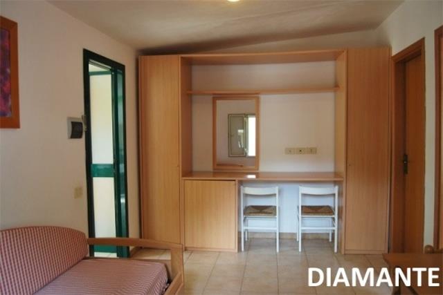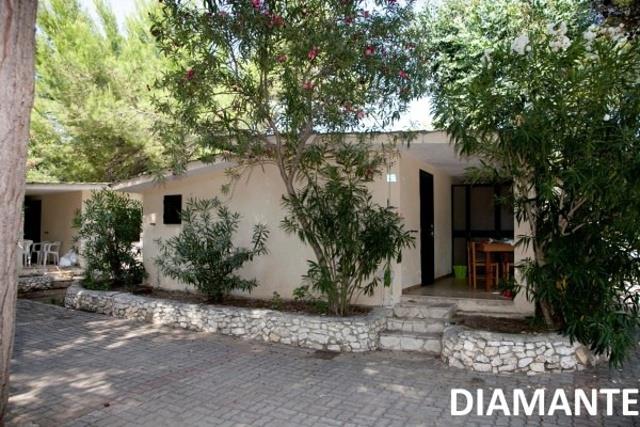 D4 DIAMANTE: (max. 4 osoby) (zděné bungalovy) ložnice s dvojlůžkem, denní místnost s rozkládacím dvojlůžkem, kuchyňský kout na zastřešené verandě, SPR+WC.