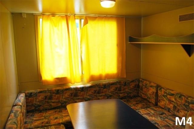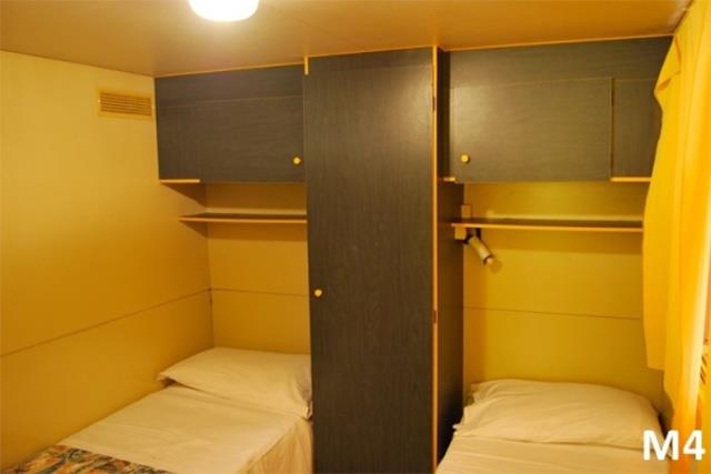 M4: (max. 4 osoby) (mobilhomy) dvě ložnice po dvou lůžkách, denní místnost s kuchyňským koutem, 2x SPR+WC.