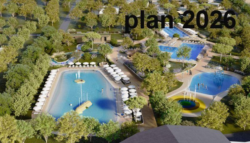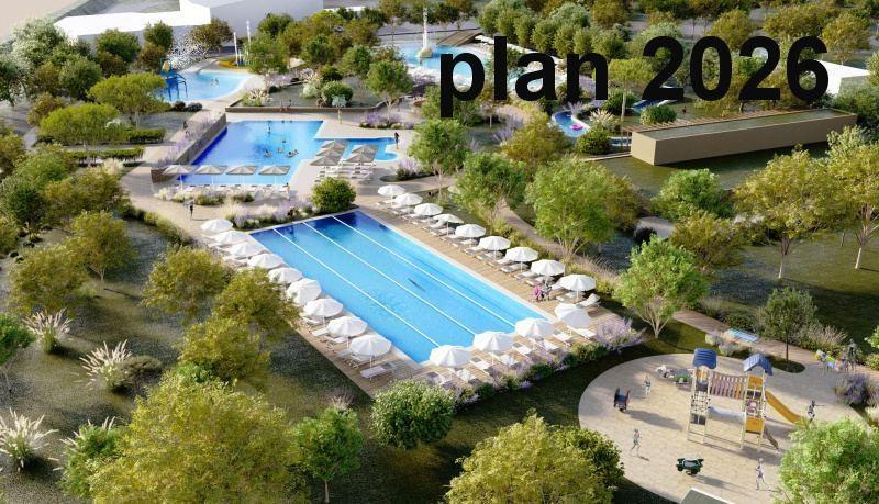 Nový aquapark pro wellness a rekreaci. Ideální pro rodiny, páry i milovníky sportu. Uvnitř bude velká laguna s jemnými tobogány a také dětský bazén o hloubce pouhých 50 cm, kde se děti budou moci bavit v naprostém bezpečí. Jednou z nejočekávanějších novinek je inovativní stříkací park s interaktivními vodními hrami, ideální pro osvěžení v horkých dnech.