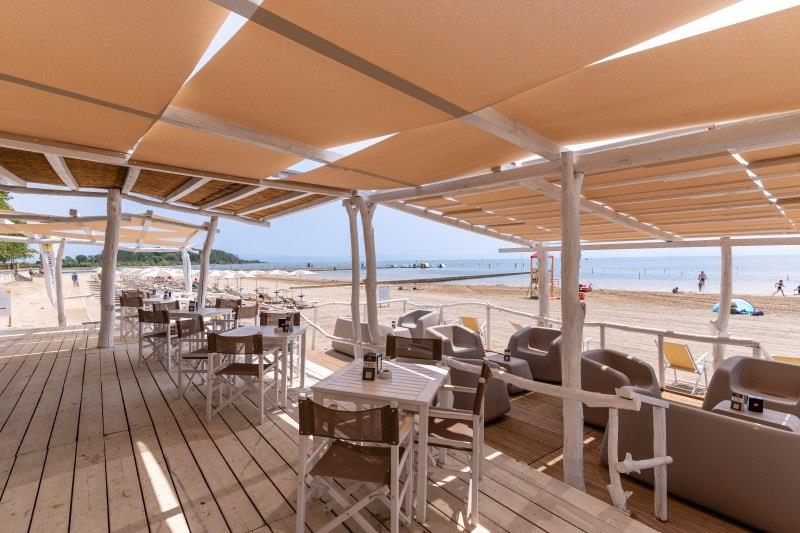Pláž: písečná. Pláž se nachází v laguně s velmi pozvolným vstupem do moře, plážový servis možno dokoupit na místě (ok. 20 €/ den), lze také umístit vlastní slunečníky.
