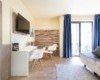 Vybavení a služby: Hotel nabízí stravování formou "all inclusive" s bufetovou snídaní, lehkým obědem a večeří. Nápoje jsou samoobslužné i během jídla od 12:00 do 22:00 (voda, nealkoholické nápoje, pivo, domácí víno, káva, čaj). Večeře formou bufetu se saláty, předkrmy, hlavními chody a dezerty. Wellness zóna / Lázně: finská sauna, biosauna, turecká lázeň, emoční sprchy, procedury (za poplatek), relaxační zóna. Wellness zóna je vyhrazena pro hosty starší 18 let. Vstup do bazénu je dětem mladším 12 let zakázán, pokud nejsou v doprovodu dospělé osoby. Akceptované kreditní karty: Amex, Visa, Carta Si, Dines, Mastercard, Bancomat. Zdarma karta Garda Guest. Kola za poplatek. Dětská postýlka na vyžádání, za poplatek 10,00 € za den, platba na místě. Domácí mazlíčci povoleni, 10,00 € za den, nejsou povoleni v restauraci/snídaňové místnosti. Bezplatné nabíjení elektromobilů