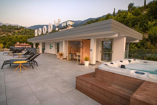Vybavení a služby: - Nedávno postavený hotel (konec roku 2019). Zařízení vhodné pro inteligentní dospělé publikum bez ohledu na věk, páry nebo malé skupiny přátel. - Hotel získal v roce 2025 certifikaci GSTC, Globální rady pro udržitelný cestovní ruch (platná do 28. 5. 2028). - Wellness centrum s vířivkou a saunou v ceně - Veřejná pláž (oblázková) s lehátky a slunečníky k dispozici za poplatek cca 5 km daleko - Akceptované kreditní karty: American Express, Visa, Carta Si, Diners, Mastercard, Bancomat/Maestro - Parkování není k dispozici - Uzavřená garáž, bez obsluhy, v ceně - Domácí mazlíčci povoleni za poplatek - Sportovní aktivity (za poplatek): tenis (cca 1 km), městské kolo, horské kolo, ping-pong - Hotel je přístupný pro osoby se zdravotním postižením, 2 vybavené pokoje k dispozici na vyžádání - Bezplatné nabíjecí stanice pro elektromobily - Bezplatná karta pro hosty Gardy