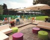 Využití venkovního bazénu se slunečníky a lehátky.