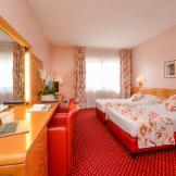 Standardní dvoulůžkový pokoj cca 12 m2. Je vybaven koupelnou s vanou nebo sprchou, fénem, telefonem, satelitní TV, trezorem, lednicí, klimatizací, Wi-Fi, balkonem nebo terasou. B2: Superior dvoulůžkový pokoj cca 15 m2. Je vybaven koupelnou s vanou nebo sprchou, fénem, telefonem, satelitní TV, trezorem, lednicí, klimatizací, Wi-Fi, balkonem nebo terasou. Dětská postýlka | Fén | Frigobar | Klimatizace | Satelitní TV | Telefon | Trezor | Vana nebo sprcha | Wi-Fi