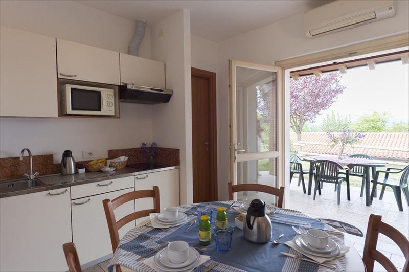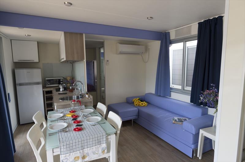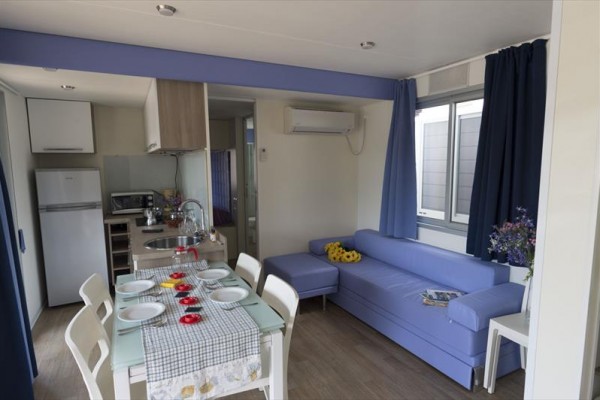 Ubytování: BILO Love Bilo: cca 24 m2. Love Bungalow je apartmán s jednou ložnicí, kuchyňským koutem s rozkládací pohovkou, ložnicí a plně vybavenou koupelnou. Má zařízenou terasu se zahradou a může ubytovat až 4 osoby. TRI Valpolicella TRILO: cca 34 m2. Bungalovy Valpolicella jsou třípokojové apartmány určené až pro 5 osob a skládají se z velkého obývacího pokoje s rozkládací pohovkou a kuchyňským koutem, dvou ložnic a plně vybavené koupelny. Venkovní terasa zařízená stolem, židlemi a dvěma lehátky. GIU1 Giulietta MH: cca 40 m2. Tuto variantu lze rezervovat až pro 6 osob. Prostory jsou rozděleny na dvě ložnice, obývací pokoj s rozkládací pohovkou a vybavenou kuchyní, dvě plně vybavené koupelny a prostornou dřevěnou verandu se stolem, židlemi a dvěma lehátky.