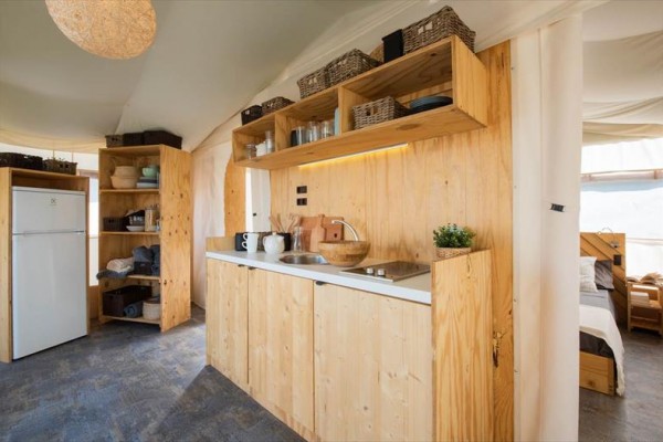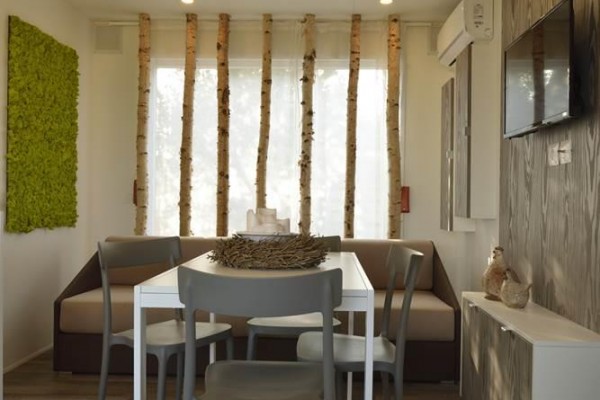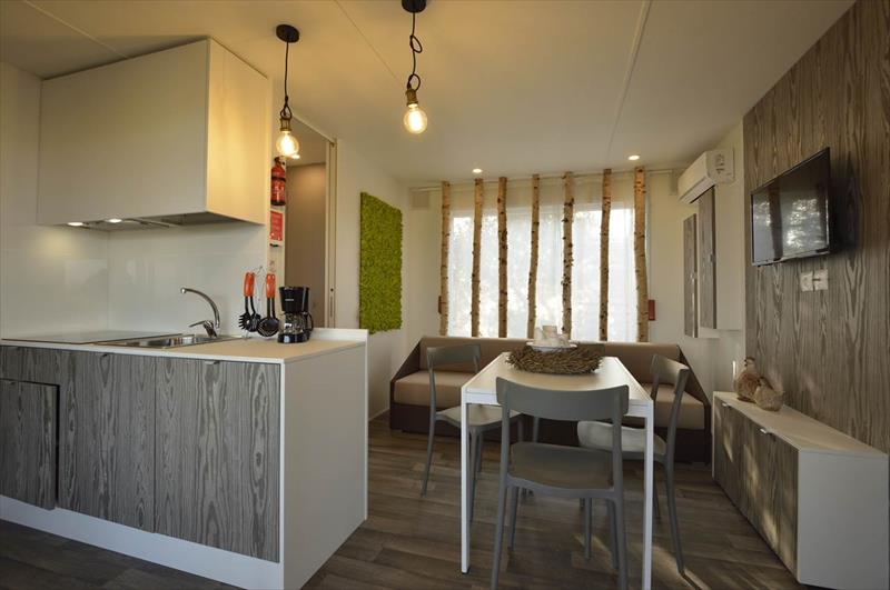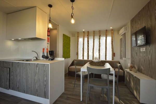 Ubytování: STAN: Safari stan o rozloze cca 28 m2 vhodný pro 5 osob, skládá se z jedné ložnice s manželskou postelí a jedné s palandou a jednolůžkovým lůžkem. Koupelna je vybavena toaletou, umyvadlem a sprchou. Kuchyň je vybavena indukční varnou deskou, lednicí, mikrovlnnou troubou, kávovarem nebo varnou konvicí a ventilátorem. Klimatizace není k dispozici. Soukromá zařízená veranda. Domácí mazlíčci NEJSOU povoleni. Postele ve zdi jsou určeny pro děti do max. 6 let (20 kg). MHTOP: TOP HILL Mobilní dům TOP HILL pojme až 5 osob. Mobilní dům o rozloze cca 37 m2 nabízí funkční a pohodlné prostory; ubytování zahrnuje obývací pokoj s klimatizací, kuchyňským koutem a pohovkou, 1 ložnici s manželskou postelí, 1 ložnici se 3 samostatnými lůžky (z nichž jedno je palanda) a 2 koupelny s toaletou, sprchou a umyvadlem. Venkovní krytá veranda (8 x 2,5 m). Jedno parkovací místo v ceně. Domácí mazlíčci NEJSOU povoleni. Postele ve stěně jsou určeny pro děti do max. 6 let (20 kg). MHLV: MH Garda Terrace s výhledem na jezero (cca 35 m2): Mobilní dům LAKE VIEW TERRACE (cca 35 m2) pojme maximálně 5 osob a nabízí pohodlnou verandu s nejlepším výhledem. Dům se skládá z obývacího pokoje s klimatizací, kuchyňského koutu s indukční varnou deskou a myčkou nádobí, pohovky, 1 ložnice s manželskou postelí, 1 ložnice se 3 samostatnými lůžky (z nichž jedno je patrové) a 2 koupelen s toaletou, sprchou a umyvadlem. Jedno parkovací místo v ceně. Domácí mazlíčci NEJSOU povoleni. Postele ve stěně jsou určeny pro děti do max. 6 let (20 kg). MH8: MH Garda Spa s výhledem na jezero (cca 35 m2): Mobilní dům LAKE VIEW s vířivkou (35 m2) se nachází na privilegovaném, klidném a stinném místě a nabízí nádherný výhled na jezero, který si můžete vychutnat i z velmi pohodlné soukromé vířivky. Ubytování zahrnuje: obývací pokoj s klimatizací, kuchyňský kout s indukční varnou deskou a myčkou nádobí, pohovku, 1 ložnici s manželskou postelí, 1 ložnici se 3 samostatnými lůžky (z nichž jedno je patrové) a 2 koupelny s toaletou, sprchou a umyvadlem. Jedno parkovací místo v ceně. Domácí mazlíčci NEJSOU povoleni. Postele ve stěně jsou určeny pro děti do max. 6 let (20 kg).