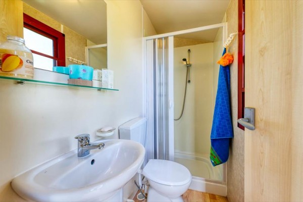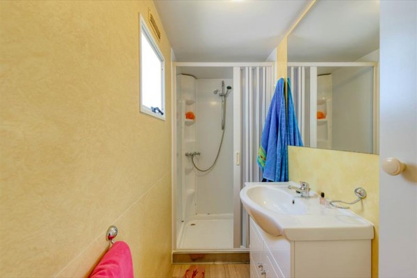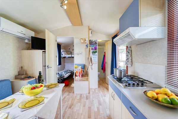 Typ chaty/Tahiti: 24 m2, dvoulůžkový pokoj, 1 pokoj s oddělenými postelemi (pokud je obsazen 4 osobami) nebo s 3. palandou (pokud je obsazeno 5 osobami), obývací pokoj s kuchyňským koutem, 1 koupelna (v Tahiti sprcha/umyvadlo oddělené od toalety). Dětská postýlka | Klimatizace | Kuchyňský kout | Lednice | Satelitní TV | Sprcha