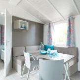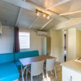Ubytování: Mobilní dům MH Dalia, cca 24 m2, maximální obsazenost 4 osoby. Má sprchu, SAT TV, trezor, mikrovlnnou troubu, lednici a terasu.