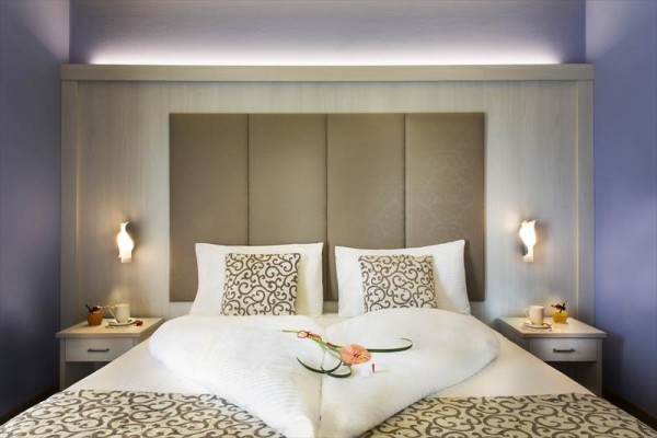 Dvoulůžkový romantický pokoj, cca 20 m2. Má sprchu, fén, telefon, satelitní TV s cca 13 německými kanály, trezor, minibar, klimatizaci, bezplatné Wi-Fi a balkon. Župan, pantofle a sada toaletních potřeb jsou v ceně. Dětská postýlka | Fén | Frigobar | Klimatizace | Satelitní TV | Sprcha | Telefon | Trezor | Wi-Fi