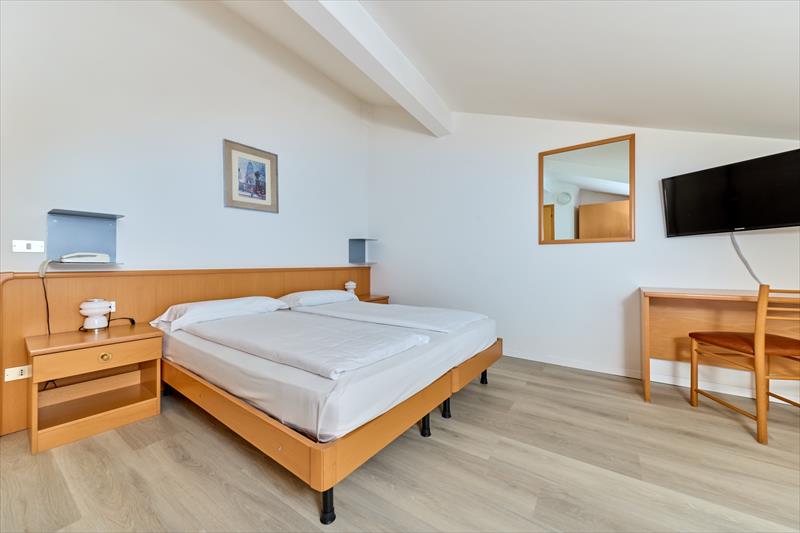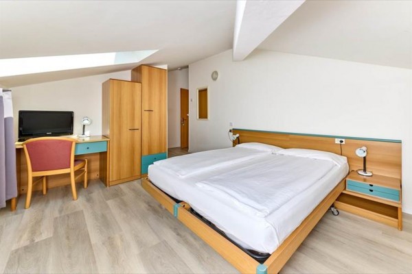 Podkrovní pokoj: dvoulůžkový pokoj v podkroví o rozloze cca 12 m2, vybavený vlastní koupelnou a satelitní TV, trezorem, psacím stolem, topením, klimatizací, fénem, WC, vlastní koupelnou, sprchou, telefonem a Wi-Fi. Dětská postýlka | Fén | Klimatizace | Satelitní TV | Sprcha | Telefon | Trezor | Wi-Fi