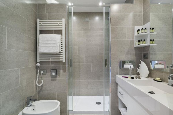 Dvoulůžkový pokoj s klasickým pokojem, balkonem a bočním výhledem na moře Pokoj s bočním výhledem na moře o rozloze přibližně 18 metrů čtverečních, zařízený v moderním a elegantním stylu, vybavený veškerým komfortem a se zařízeným balkonem. Má koupelnu, trezor, fén, barevnou televizi, Wi-Fi, klimatizaci a minibar.