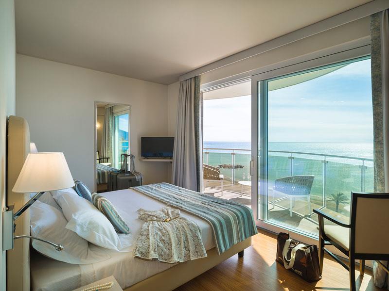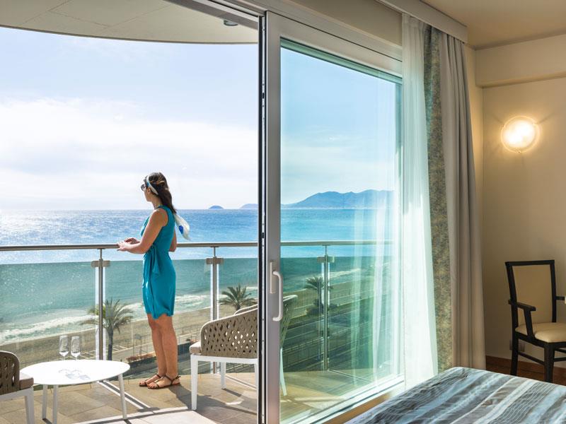 DVOJLŮŽKOVÝ KLASICKÝ POKOJ S BALKONEM A VÝHLEDEM NA MOŘE Pokoj s výhledem na moře o rozloze přibližně 18 metrů čtverečních, zařízený v moderním a elegantním stylu, vybavený veškerým komfortem a se zařízeným balkonem. Má koupelnu, trezor, fén, barevnou televizi, Wi-Fi, klimatizaci a minibar.