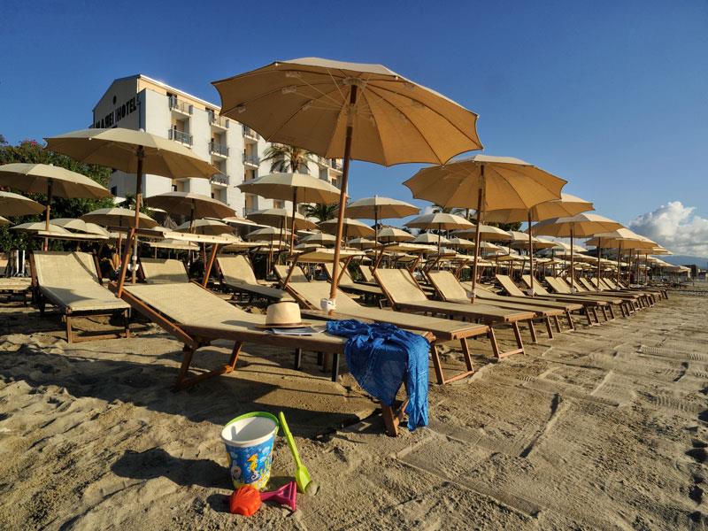 Pláž dostupná přibližně od začátku dubna do konce října (pokud počasí dovolí).V ceně jsou 2 lehátka,1 slunečník a výměna ložního prádla na dvoulůžkový pokoj.Pro hosty je již k dispozici den příjezdu,přičemž den odjezdu není zahrnut jako služba.\r