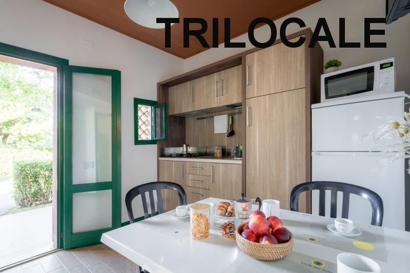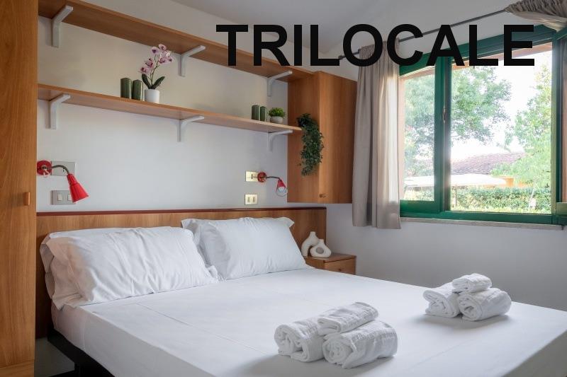 | apartmán Trilocale Standard: (max. 4 osoby, 50 m2) ložnice s dvojlůžkem, ložnice se dvěma samostatnými lůžky, denní místnost s kuchyňským koutem, SPR+WC+fén, klimatizace. Veranda s posezením. | ||||||||||||||||||||||||||||||||||||||||||||||||||||||