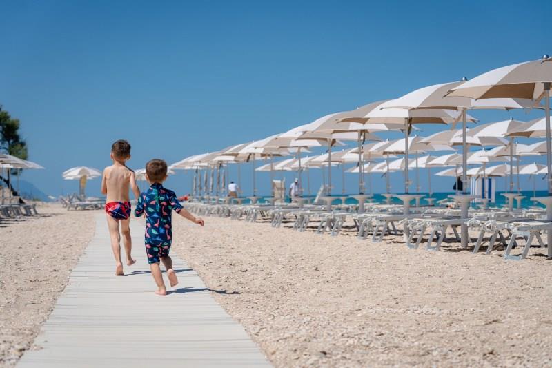 Pláž: písečná a oblázková s pozvolným vstupem do moře, plážový servis možno dokoupit na místě, část pláže volná.