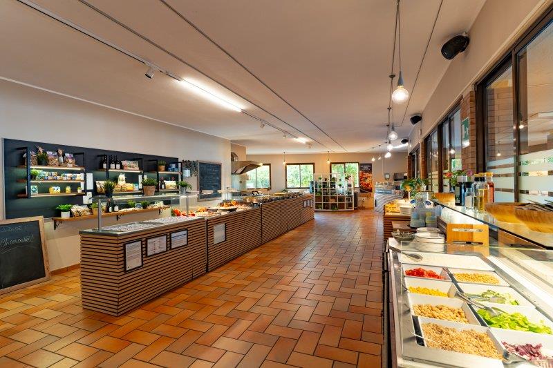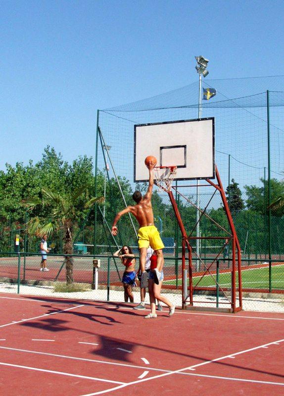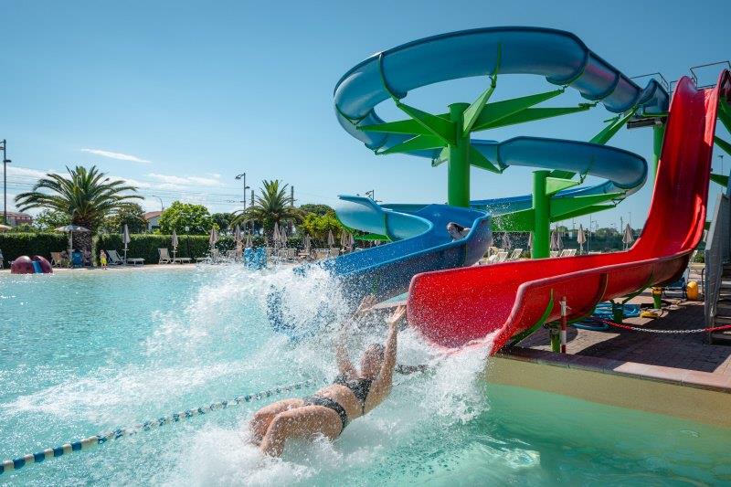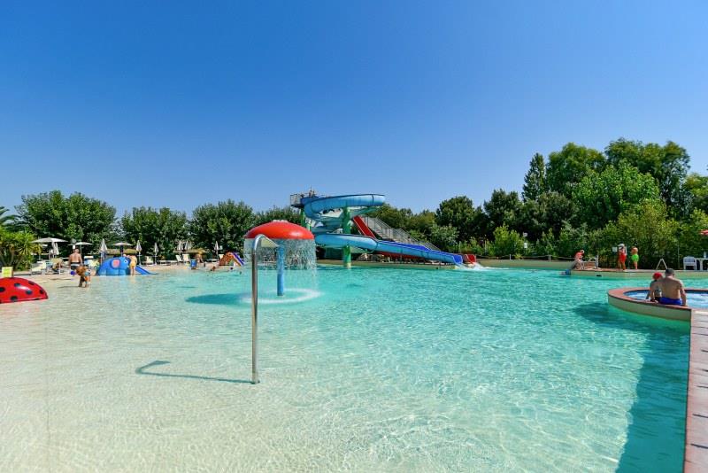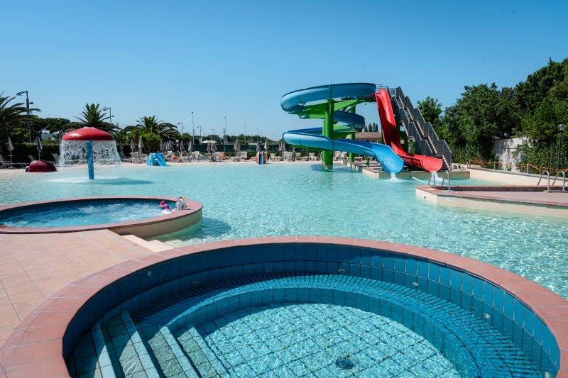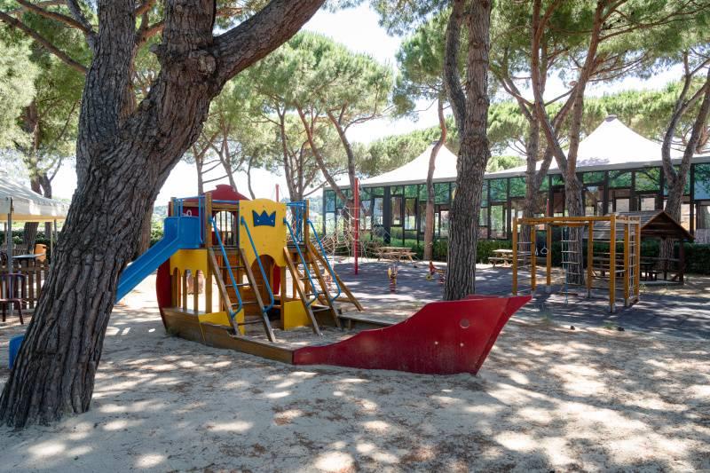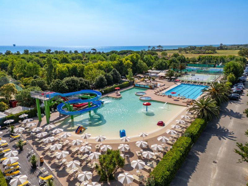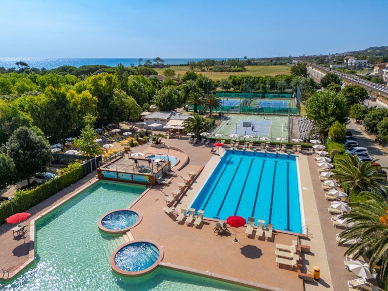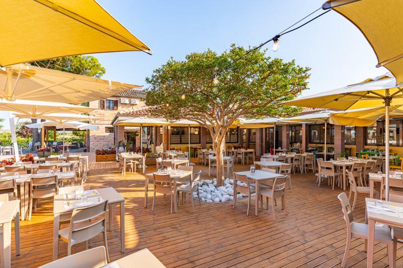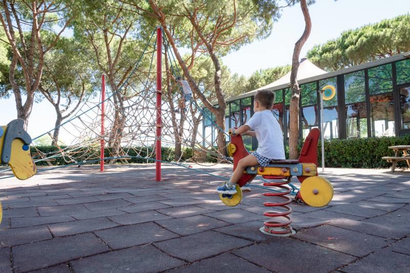 Vybavení a služby: recepce, restaurace-pizzerie, bar, obchod, prádelna (za poplatek), bazén pro dospělé a pro děti (povinná koupací čepice), dětské hřiště, spinning, plážový volejbal, aquagymnastika, aerobic, tělocvična, stolní tenis, animační programy a miniclub (cca 1/6-5/9), Wi-Fi (ve společných prostorách), půjčovna kol (za poplatek).